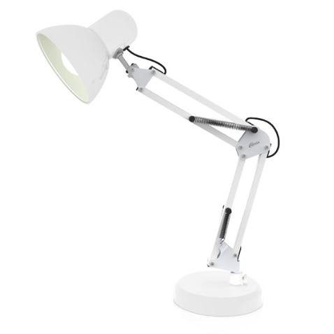 Лампа имеет металлический держатель с удобной регулировкой высоты и наклона, поворотный на 360о плафон, оберегающий ваше зрение и позволяющий установить оптимальное направление светового потока. Настольная подставка устойчивая, не скользит, вы сможете расположить настольную лампу на столе, на тумбочке, на полке, на любой компактной горизонтальной поверхности, обеспечив себе комфортное освещение рабочего места. Практичная конструкция лампы, простота, удобство и высокая надёжность будут вам служить долгое время.