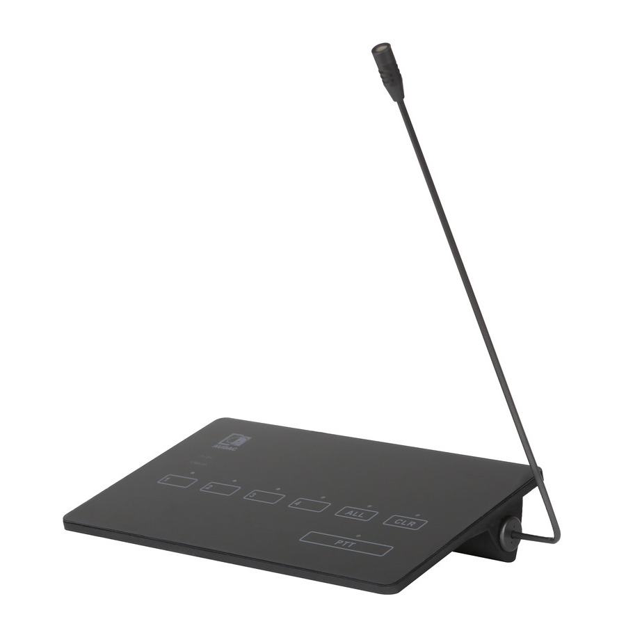 Аналоговый 4-х зонный пейджинговый микрофон, предназначенный для матричного коммутатора Audac MTX48. Корпус изготовлен из ABS. Под фронтальной акриловой панелью спрятаны сенсорные кнопки управления. Предусмотрена индикация выбранных зон и статуса передачи данных. Микрофон с электретным капсюлем имеет кардиоидную диаграмму направленности и закреплен на кронштейне с возможностью выбора нужного угла наклона в одной вертикальной плоскости. В комплекте имеется ветрозащитная насадка на микрофон и 2-х метровый кабель для подключения к коммутатору. При помощи витой пары категории 5 или выше расстояние до коммутатора может быть увеличено до 300 м. Каскадное включение пейджинговых микрофонов может быть осуществлено с помощью дополнительных сплиттеров и коммутационных блоков AEJ03P или CP45ARJ. Модель выпускается в черном цветовом исполнении.