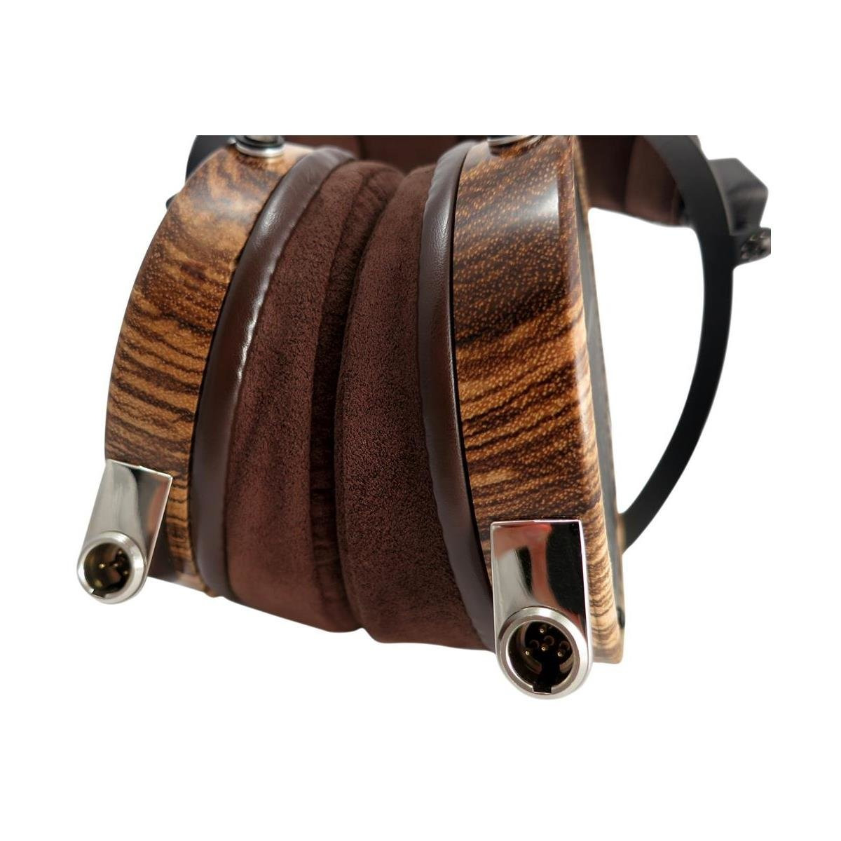 Корпуса наушников изготовлены из натурального дерева зебрано, а их тыльная сторона закрыта металлической решеткой. Данная модель выпускается с амбушюрами двух типов – выполненных из натуральной кожи или искусственной замши. Амбушюры имеют мягкую набивку переменной толщины, что обеспечивает комфортное прилегание к голове при надежной фиксации наушников.