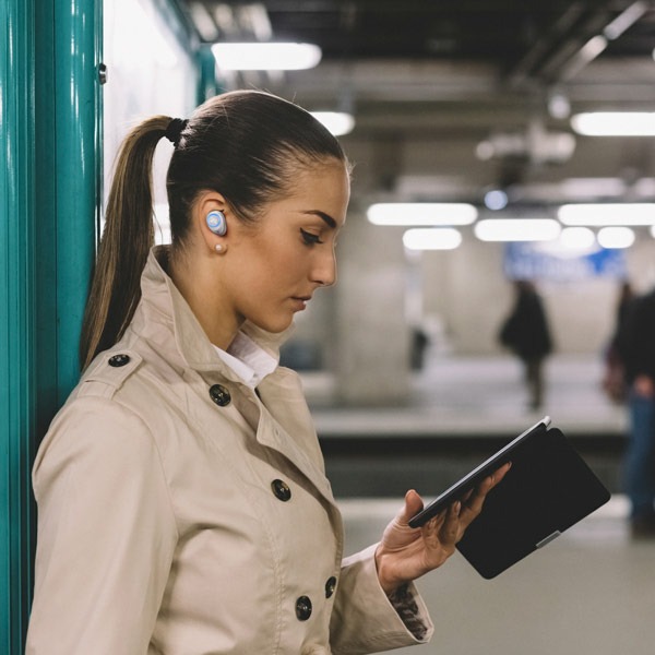 Устройство выдерживает до 20 часов непрерывной работы. Его аккумулятор можно полностью перезарядить с помощью батареи, встроенной в смарт-чехол. В комплект входят амбушюры разного размера, позволяющие сделать прослушивание музыки комфортным для каждого человека.