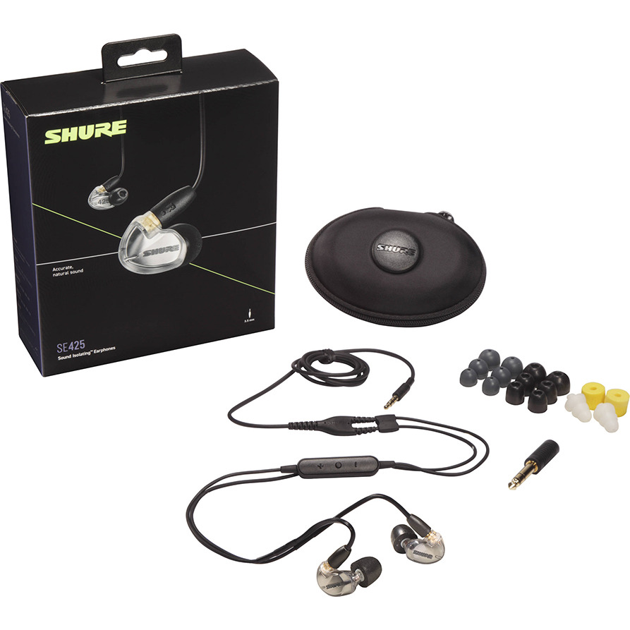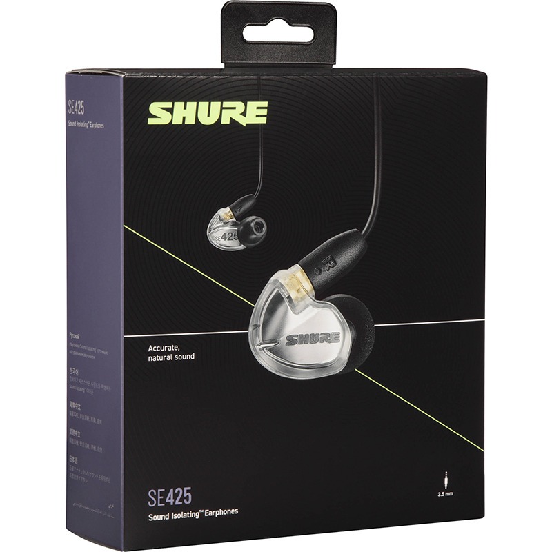 SHURE SE425-V+UNI-EFS - Внутриканальные наушники обеспечивают точное и сбалансированное звучание благодаря сдвоенным драйверам высокого разрешения. Наушники имеют твитер и вуфер, пассивный кроссовер для разделения высоких и низких частот и звукоизолирующие втулки для защиты от шума.