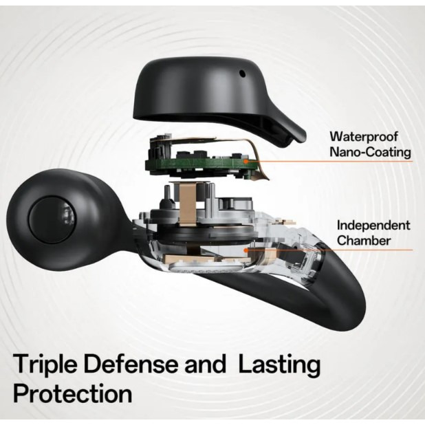 Эргономичное положение наушников обеспечивает естественное стекание пота и уменьшает прямой контакт с поверхностью. Отдельные камеры BassDirect™ защищают компоненты печатной платы от пота, а водонепроницаемое нанопокрытие увеличивает срок службы компонентов.