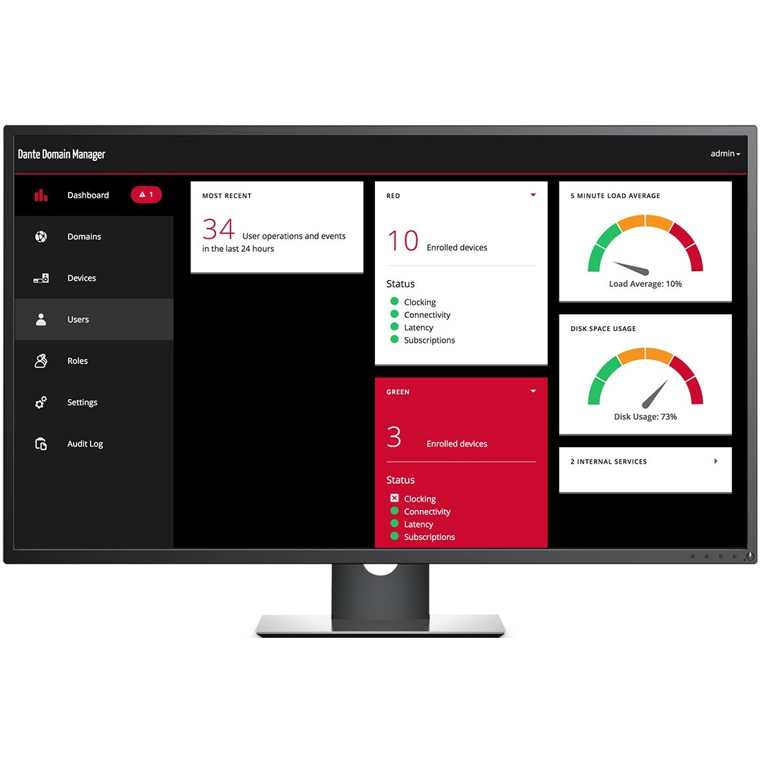 - Адаптивный пользовательский веб-интерфейс: доступ к Dante Domain Manager с любого персонального компьютера или мобильного устройства