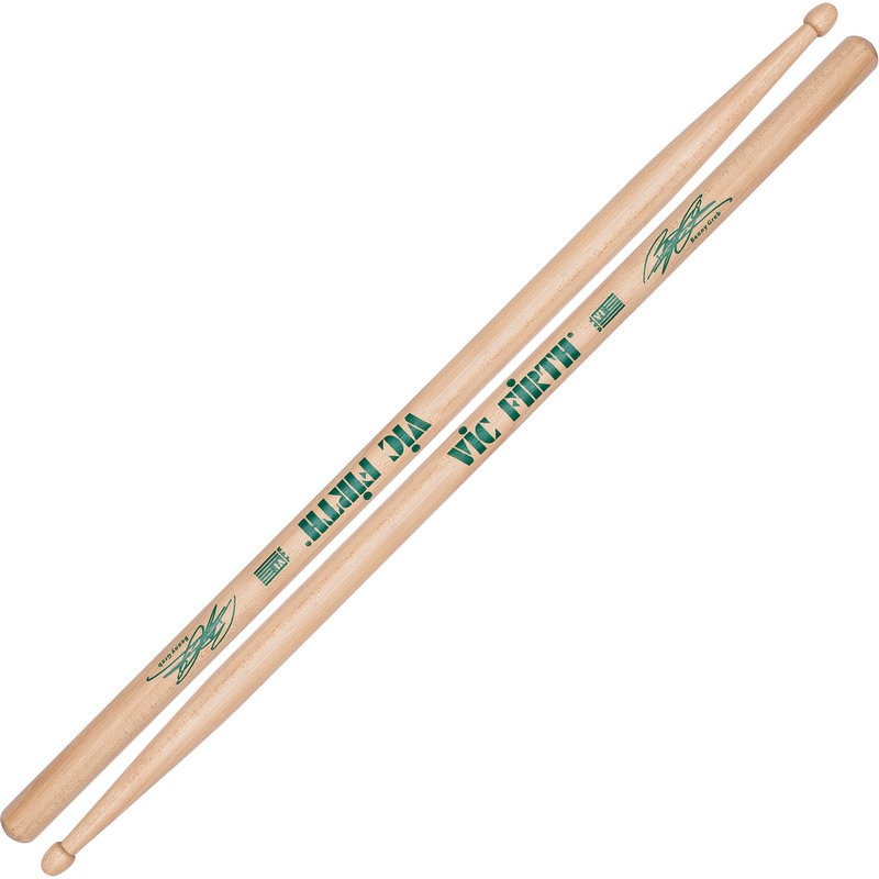 Vic Firth SBG - барабанные палочки специальной серии Signature Sticks, подписанные Benny Greb. Барабанные палочки SBG размера 5B, имеют каплевидный деревянный наконечник для насыщенного звука тарелок. Vic Firth SBG производит наполненный высокий звук, распространяет энергию над более узкой областью; производит богатый звук тарелок, даёт сфокусированную атаку звука. Барабанные палочки Vic Firth рекомендованы для тускло звучащих акцентов при игре в медленном и среднем темпе. Vic Firth SBG имеет хороший отскок, предназначен для чётких и резких ударов. Прекрасно подходят для мягкого, акцентного звукоизвлечения особенно при симметричном захвате.