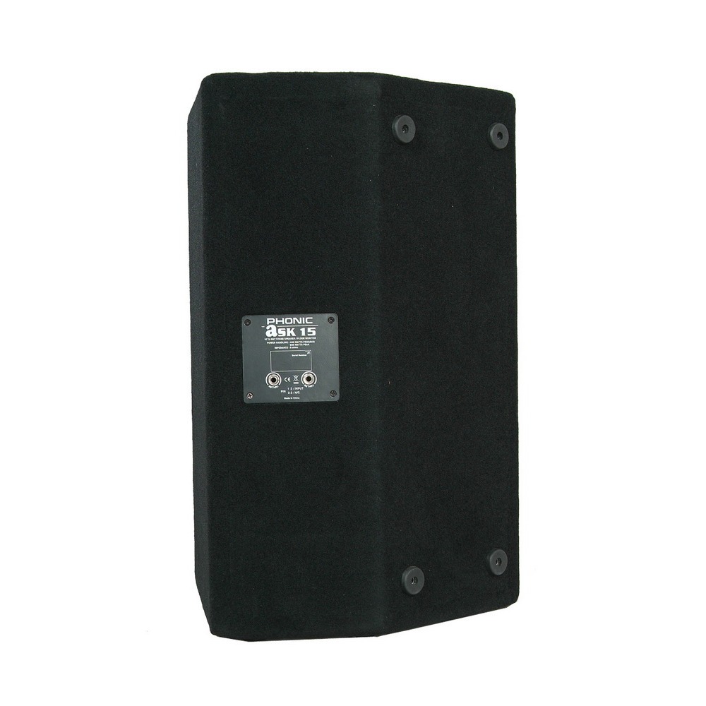 Phonic aSK15 - пассивная 2-х полосная акустическая система/напольный монитор фазоинверторного типа с 15 дюймовым НЧ динамиком и 1.3-дюймовым титановым ВЧ драйвером, номинальная мощность 700 Вт (peak 1400 Вт RMS), импеданс 8 Ом, чувствительность 98 дБ, 2 х 1/4 TS Jack входа, угол дисперсии 90° х 70°, частотный диапазон 45 Гц - 20 кГц, ручки для транспортировки, корпус покрыт акустической тканью, PTC защита фильтра, габариты 705 x 470 x 375 мм, вес 21 кг. Phonic aSK15 - 1400 ваттная пассивная акустическая система/монитор с чувствительностью 98 дБ. Система оснащается 15 дюймовым (380 мм) НЧ динамиком со звуковой катушкой диаметром 66 мм с огромным рабочим ходом и новым 1.3-дюймовым ВЧ драйвером из чистого титана с двумя фронтальными фазоинверторами. Скошенный дизайн в 45° позволяет использовать АС в качестве напольного монитора. Корпус из MDF фанеры толщиной 15 мм снабжен внутренними распорками, которые минимизируют вибрацию, а также имеются встроенные ручки для транспортировки.