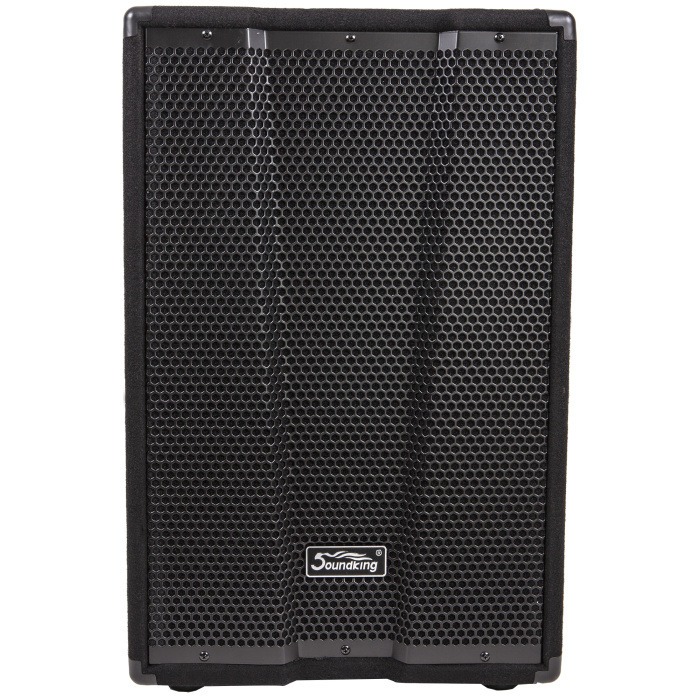 Soundking KJ10 – пассивная 10-дюймовая акустическая система. В нижней части корпуса установлен 10-дюймовый вуфер, имеющий 50-миллиметровую катушку, в верхней – компрессионный драйвер на 34 мм. Комбинация НЧ и ВЧ динамиков обеспечивает детализованные и яркие высокие частоты вместе с мощными басами. По уровню -10 дБ диапазон частот составляет 65-20 000 Гц. Продолжительная мощность системы равна 200 Вт, в пике – 800 Вт, звуковое давление – максимум 123 дБ. Охват в пределах 80x60 градусов. Возможности расширяет кроссовер, имеющий частоту среза 2,7 кГц. Система KJ10 выполнена в корпусе с черным оформлением и усиленными углами из металла.