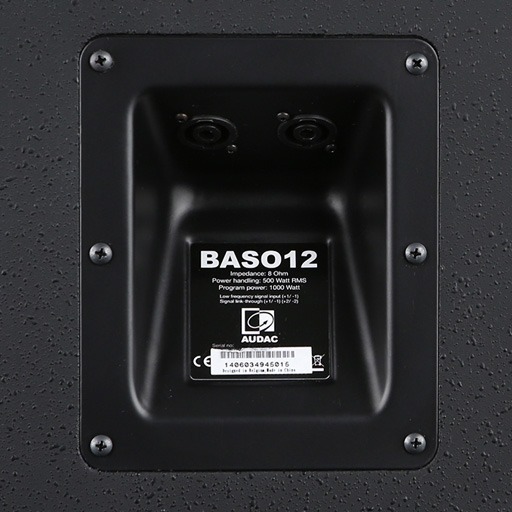Audac BASO12/B - пассивный сабвуфер из серии BASO, средняя модель. Модели серии отличаются лишь калибром динамика, габаритными размерами и параметрами чувствительности и мощности . Классически спроектированный пассивный сабвуфер фазоинверторного типа номинальной мощностью 500 Вт RMS обладает невероятно высокими энергетическими характеристиками, позволяющими ему на низких частотах достигать уровня звукового давления 125 дБ! Динамик с ферритовой магнитной системой и 12” мембраной имеет характерную для профессиональных НЧ-драйверов чувствительность 98 дБ/Вт/м. Типично для профессиональной головки полоса воспроизводимых частот начинается от 40 Гц (-3 дБ) и простирается до 300 Гц; фазоинвертор же настроен чуть повыше, на 45 Гц. Динамик и щелевой порт фазоинвертора закрыты перфорированной стальной декоративной решеткой. На боковых панелях предусмотрены небольшие углубления для переноски сабвуфера. Коммутация осуществляется через профессиональные 4-х контактные терминалы Speakon NL-4MP («+1» – сигнал, «-1» – «земля»), один из разъемов подключен параллельно и предназначен для подключения второго сабвуфера. Какие-либо пассивные фильтры внутри сабвуфера отсутствуют, подразумевается, что аудиосигнал для низкочастотного LFE-канала корректируется и фильтруется внешним AV-процессором. Предусмотрен монтаж 35-мм опорной штанги, а также опциональный монтажный комплект MBK100. Модель выпускается в черном (/B) и белом (/W) цветовых вариантах.