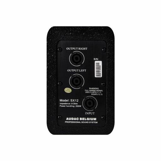 Audac SX - это серия сабвуферов с интегрированными усилителями мощности для дополнительных (сателлитных) широкополосных колонок. Эти сабвуферы предназначены для воспроизведения мощных реалистичных басов без потери чистоты и качества звука. Воспроизводимый ими мощный низкочастотный сигнал имеет крайне низкий уровень искажения и плоскую частотную характеристику в области низких частот. Колонки изготовлены из 18 мм многослойной древесины твердых пород, покрытой износостойким и долговечным черным EPDM покрытием, и оснащены ручками.