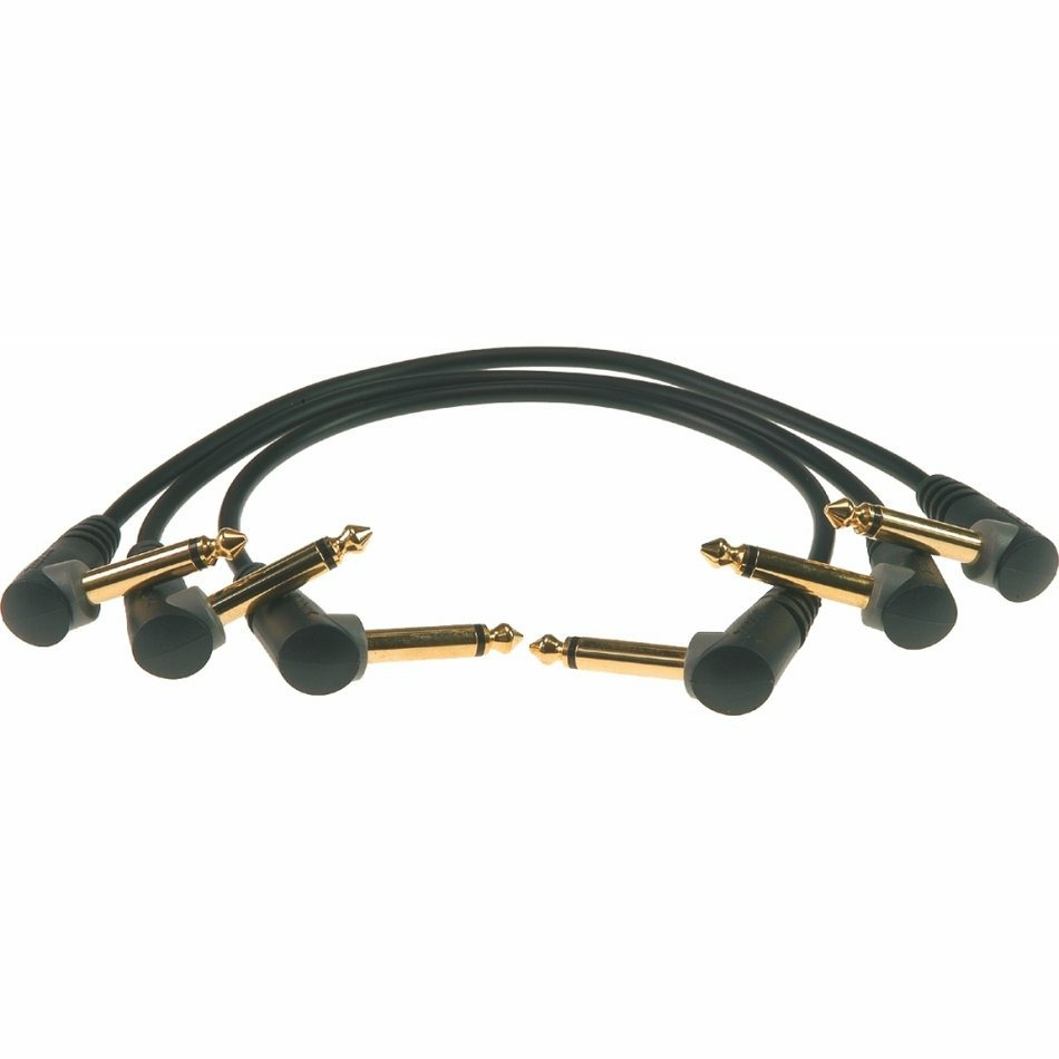 PP-AJJ0015 - набор соединительных кабелей от компании Klotz. Комплект содержит три кабеля, предназначенных для подключения гитарных педалей (эффектов). Внешняя оплетка всех кабелей производится из прочного поливинилхлорида черного цвета. Экранирование каждого кабеля представлено медной спиральной обмоткой, защищающей сигнал от внешних электромагнитных помех. Каждый кабель оснащен двумя четвертьдюймовыми угловыми TS mono-Jack разъемами. В целях улучшения характеристик электропроводности и увеличения срока службы контакты коннекторов позолочены. Длина каждого кабеля составляет 15 см.