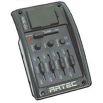 Artec ATE-CH предусилитель для акустической гитары – удобный и недорогой предусилитель, который позволяет создавать разнообразные акустические эффекты с помощью самой обыкновенной акустической гитары. После переведения переключателя Chorus пользователь сможет пребывать в иной атмосфере. Изысканные чудные и ювелирные гитарные звуки отныне не будут проблемой.