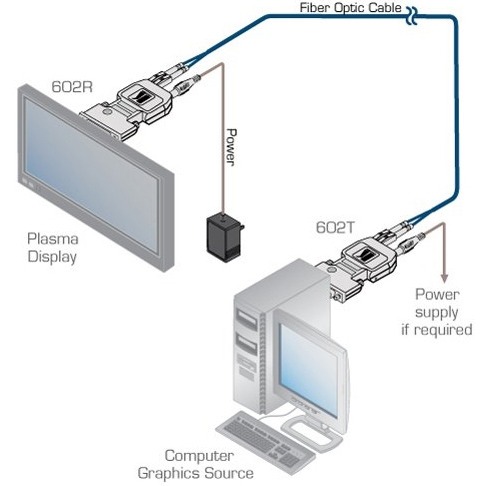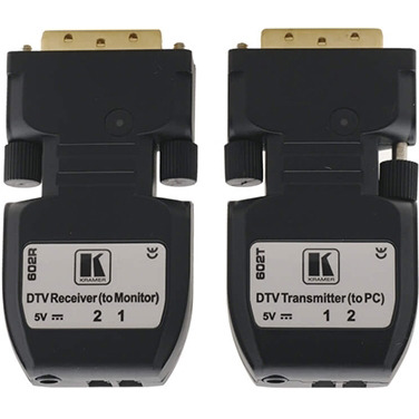602R/T – малогабаритные передатчик и приемник сигнала DVI по волоконно-оптической линии, вставляемые непосредственно в разъем DVI. Приборы поставляются единым комплектом.