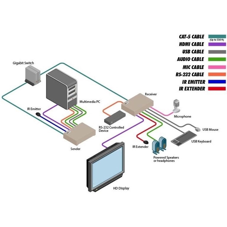 | Тип | Приемник сигналов HDMI, USB, сигналов управления ИК, RS-232 и двунаправленного аудио из IP-сетей 1000BaseT |