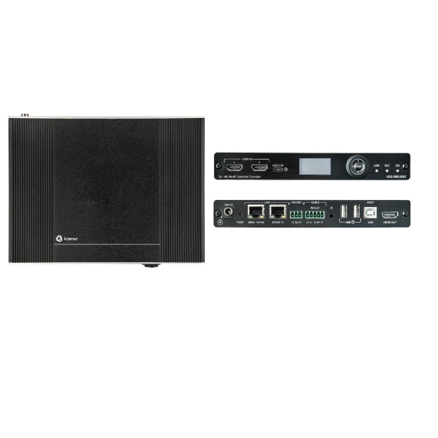 KDS-SW3-EN7 – кодер и передатчик в сеть Ethernet сигналов HDMI с разрешением до 4K/60 Гц (4:2:0), аудио, RS-232, ИК и USB. Можно выбирать один из входов: 2хHDMI или USB-C. Оснащен проходным выходом HDMI. Производит преобразование сигналов HDMI, эмбеддированного аудио, RS-232, ИК и USB в цифровой поток, передаваемый по сети IP на основе витой пары в режиме Unicast или Multicast. Устройство также способно производить кодирование аудиосигнала в IP-поток Dante. Управление по IP, KDS-7-MNGR. Совместимый приемник: KDS-DEC7.