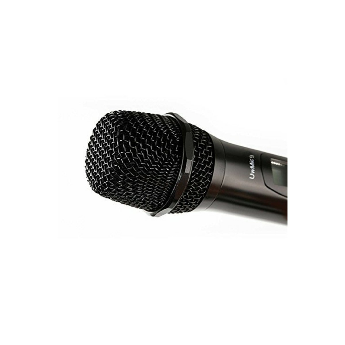 UwMic9 HU9 совместим с приемником RX9, он также может использовать вместе с UwMic9 RX9 + TX9 в качестве набора двухканальных беспроводных микрофонов.