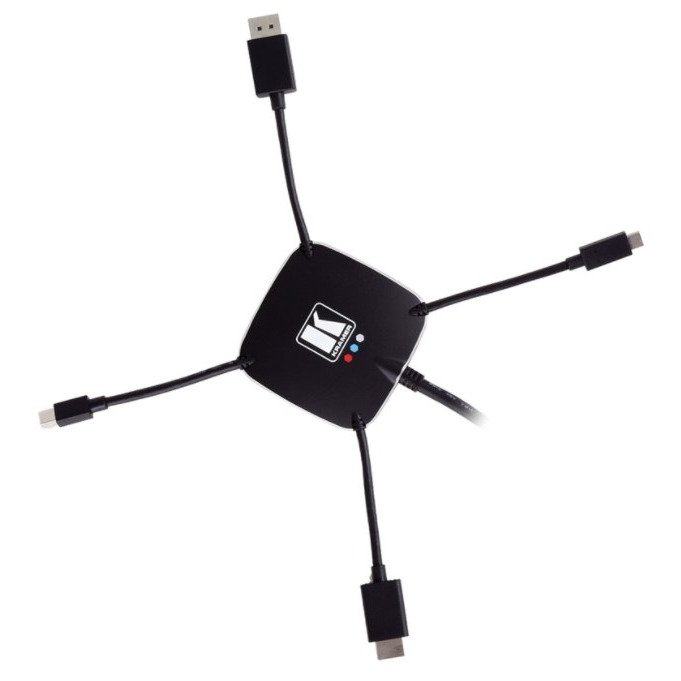 K-SPIDER - активный преобразователь интерфейсов HDMI, DisplayPort, mini-DisplayPort и USB-C в формат HDMI. Устройство позволяет подключить источник сигнала одного из четырех форматов к потребителю сигнала HDMI.