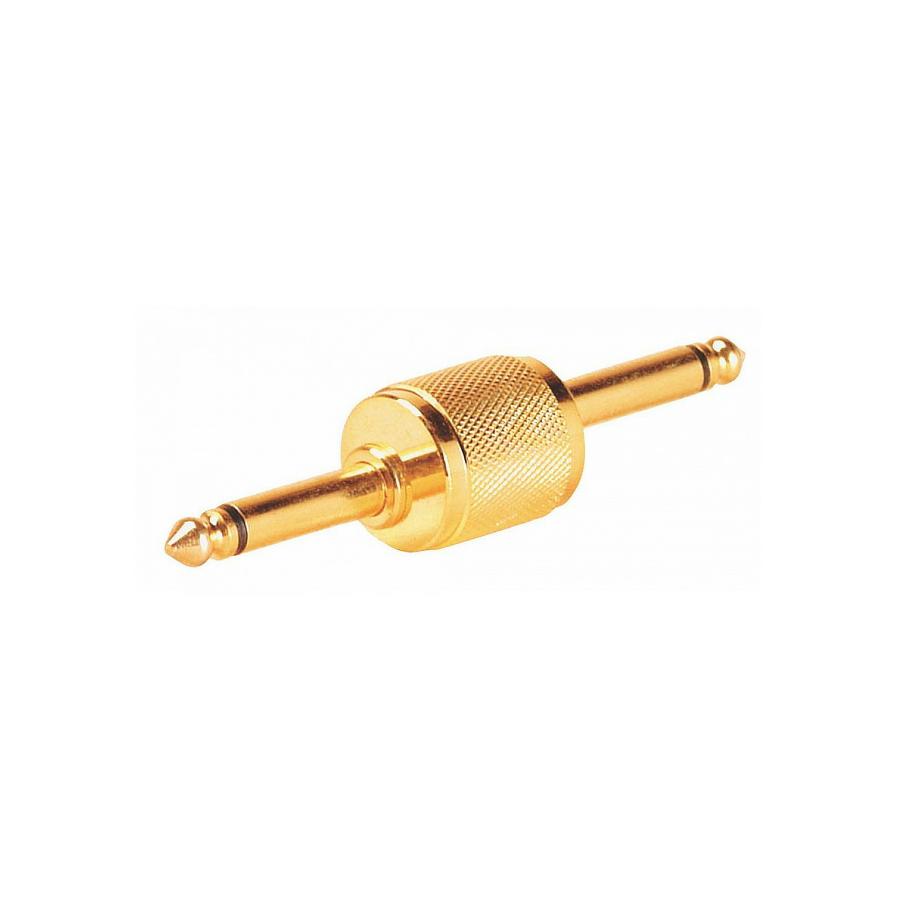 Переходник PC305 оснащен разъемами jack mono 6,3 мм папа. Переходник изготовлен из металла золотистого цвета. Рельеф на корпусе позволяет удобно держать переходник. Смещенная муфта обеспечивает надежное соединение, исключая путаницу кабеля.