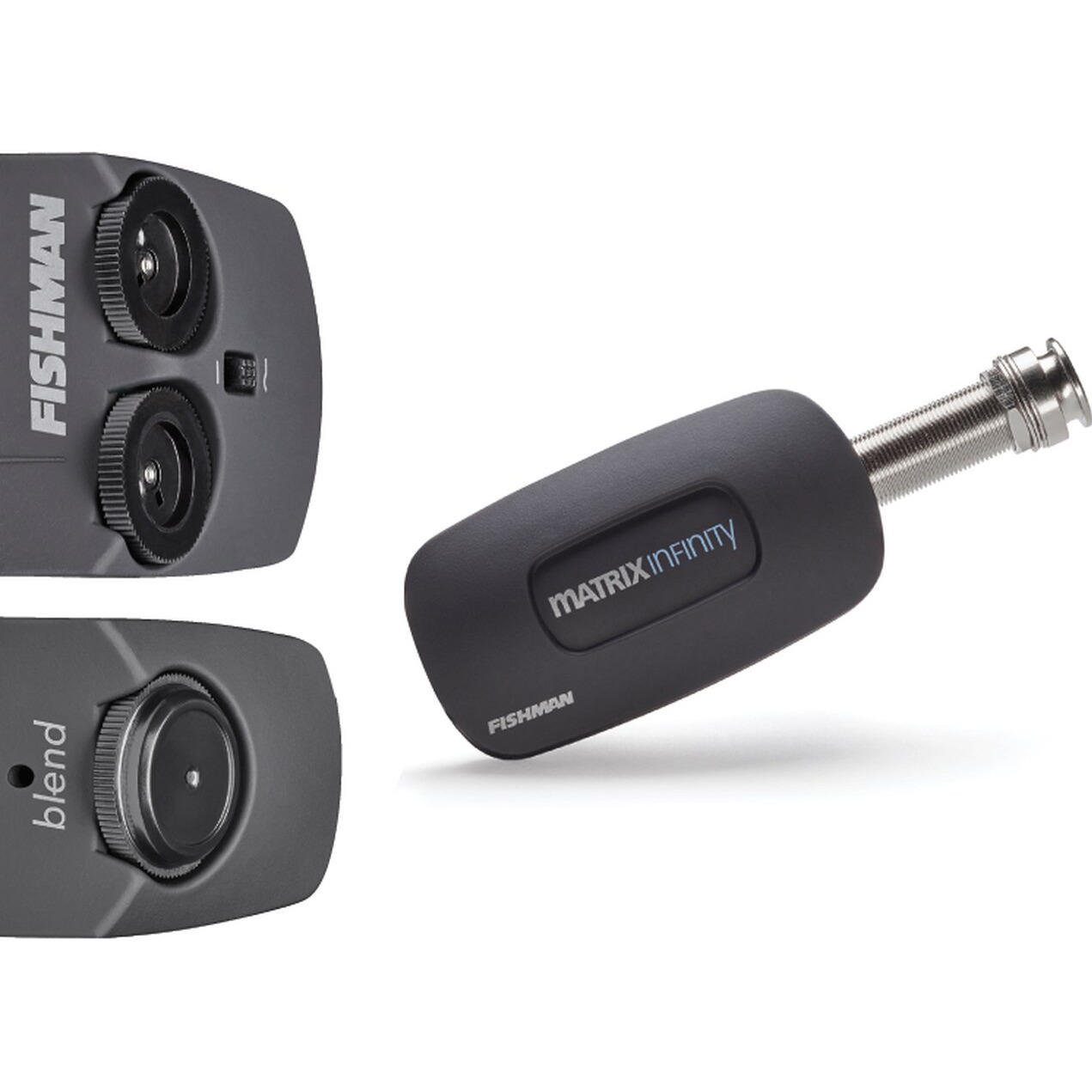 Система звукоснимателя и предусилителя Matrix Infinity Mic Blend, оптимизированная для улучшения работы с современными усилителями акустической гитары, также добавляет многопозиционный кардиоидный конденсаторный микрофонный капсюль для усиления "воздуха" и ощущаемости звука. Четкий, прозрачный, узнаваемый тон Fishman и динамический отклик струн были объединены с многочисленными новыми конструктивными особенностями и улучшенными характеристиками.