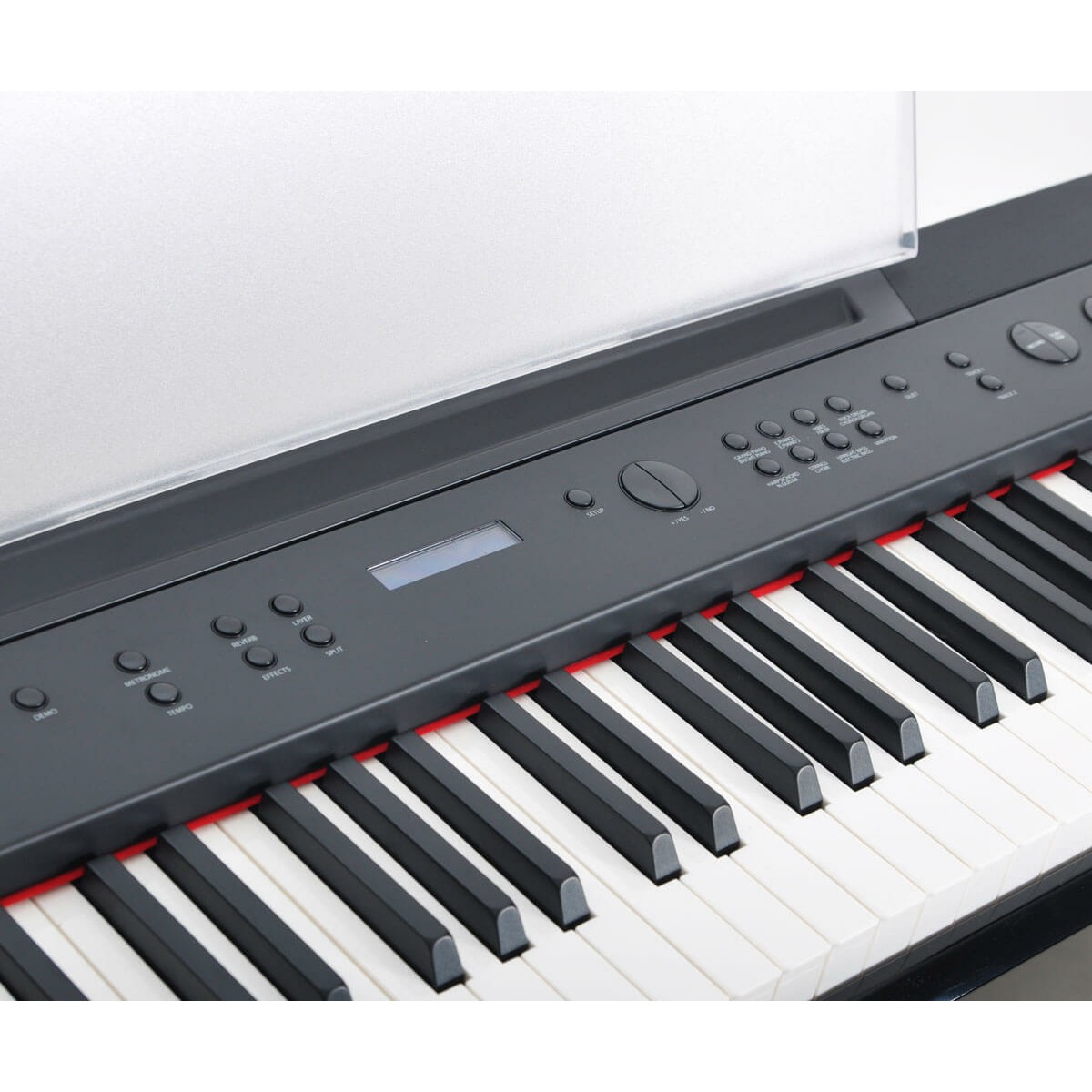 Artesia A-10 Black polished отличный выбор для начинающих музыкантов. Отлично подойдёт для тех, кто имеет большое желание научиться играть на фортепиано, но ограничен в средствах. Artesia A-10 Black polished полностью удовлетворит потребности начинающего пианиста. В арсенале инструмента 88 взвешенных клавиш, 64 голосовая полифония и 14 тембров. Помимо этого, имеется эффект реверберации и хорус, а Ваши первые шаги в исполнении фортепианных произведений можно записывать в память инструмента! Взвешенные молоточковые клавиши делают ощущения от игры максимально похожие на ощущения от игры на классическом акустическом инструменте. Акустическая система представляет собой 2 динамика, суммарной мощностью 30 Вт.