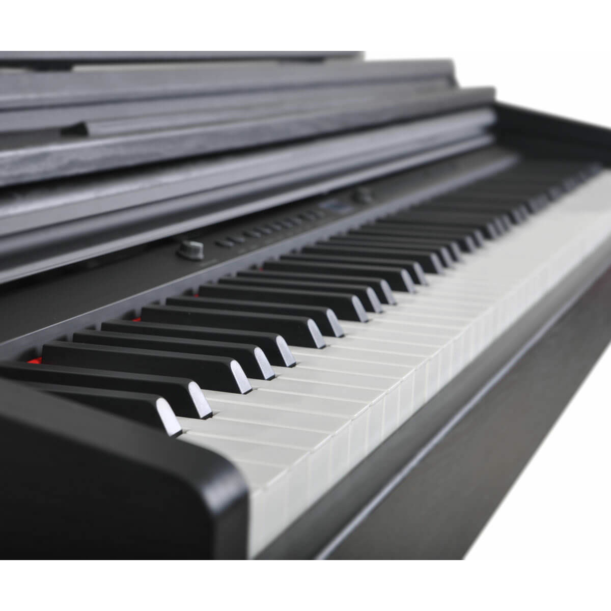 Artesia DP-7 Black PVC цифровое фортепиано кабинетного типа, отличный выбор для начинающих музыкантов. Отлично подойдёт для тех, кто имеет большое желание научиться играть на фортепиано, но ограничен в средствах. Artesia DP-7 Black PVC полностью удовлетворит потребности начинающего пианиста. В арсенале инструмента 88 взвешенных клавиш, 64 голосовая полифония и 128 тембров. Помимо этого, имеется эффект реверберации и хорус, а Ваши первые шаги в исполнении фортепианных произведений можно записывать в память инструмента! Взвешенные молоточковые клавиши делают ощущения от игры максимально похожие на ощущения от игры на классическом акустическом инструменте. Акустическая система представляет собой 2 динамика, суммарной мощностью 30 Вт.