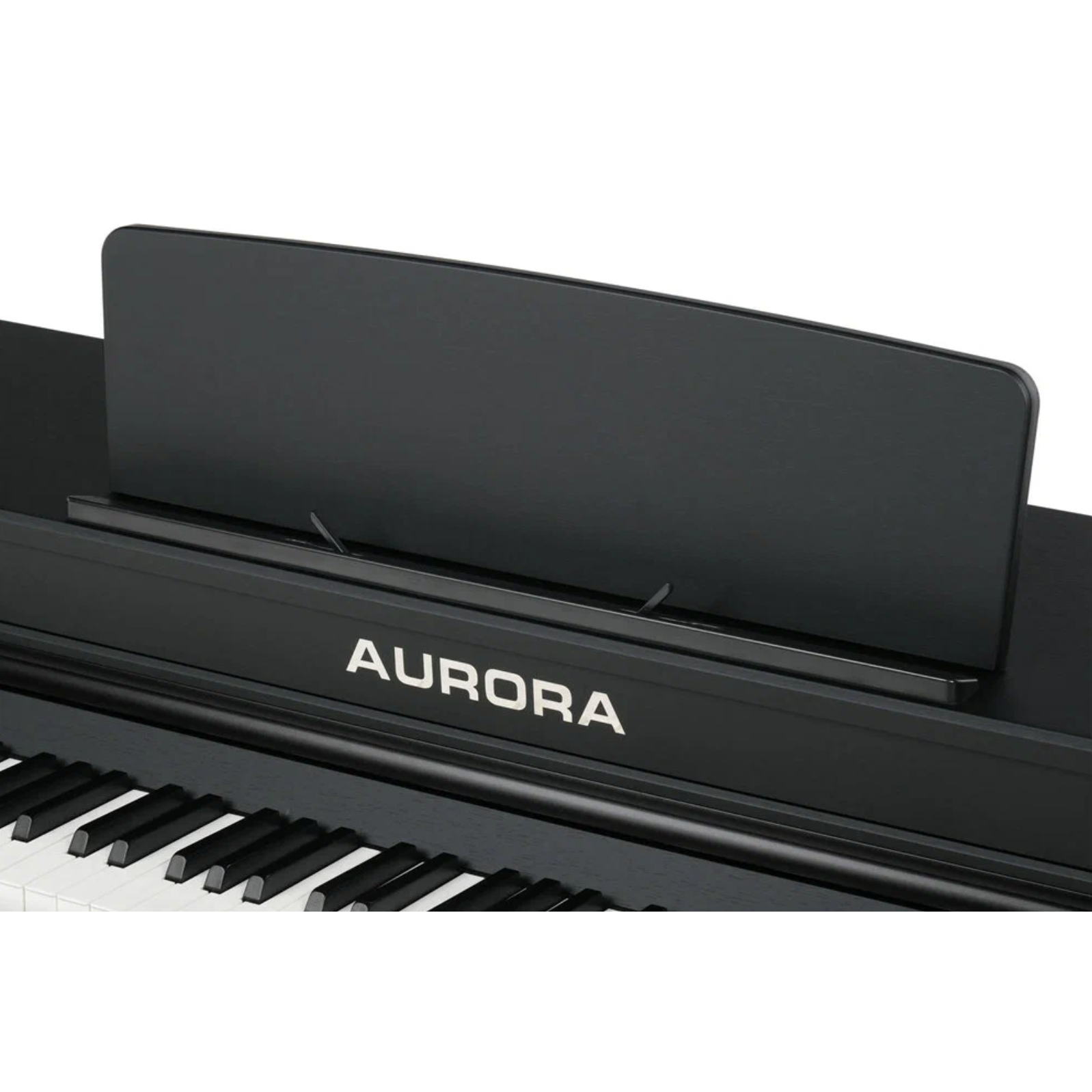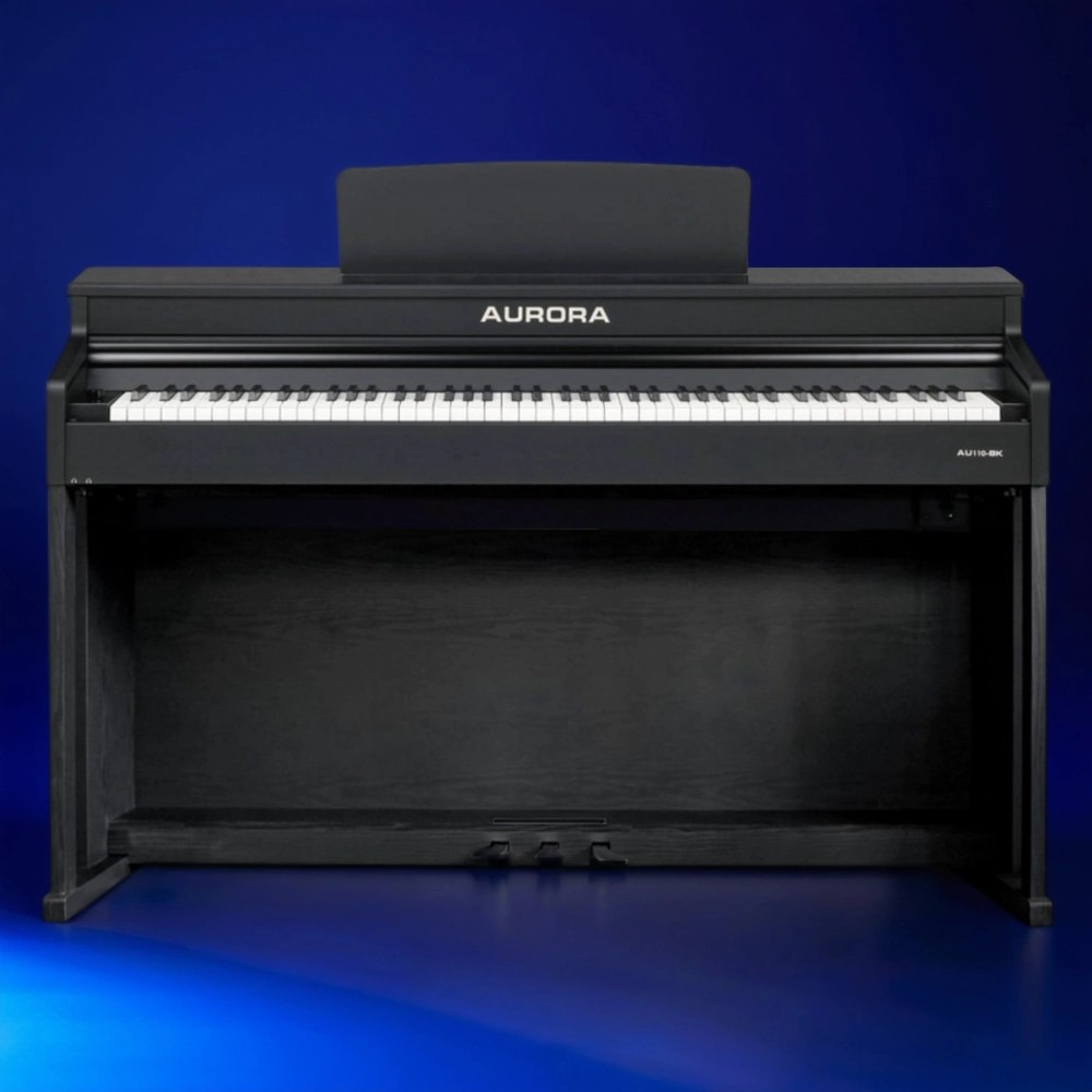 Цифровое пианино в классическом чёрном корпусе от бренда Aurora. Инструмент сочетает передовые технологии звучания и эргономичный дизайн, подходит для домашних занятий, студийной работы и живых выступлений.