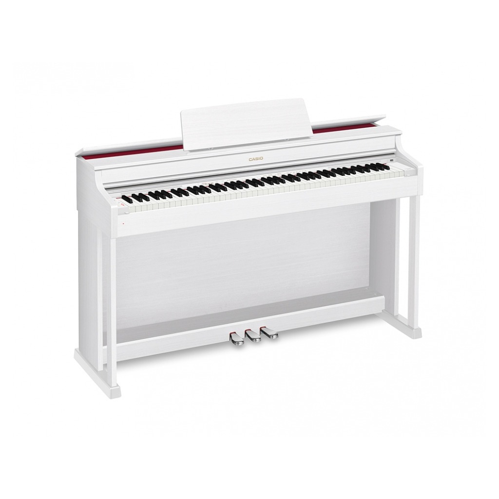 CASIO CELVIANO AP-470WE - это цифровое фортепиано с полноразмерной клавиатурой (88 клавиш), аутентичным звучанием и классическим дизайном. Клавиатура фортепиано трехсенсорная, модель Scaled Hammer Action Keyboard 2-го поколения. Фортепиано приятно порадует уникальными тембрами классического рояля. Производитель особенно выделяет два тембра, один из которых прекрасно подойдет для исполнения классики, второй - более яркий, станет хорошим решением для джаза, поп- и рок-музыки. Всего пианино оснащено 22 тембрами. В конструкции CASIO CELVIANO AP-470 реализована технология резонанса струн, которая дает возможность получить по-настоящему живое звучание акустического инструмента.