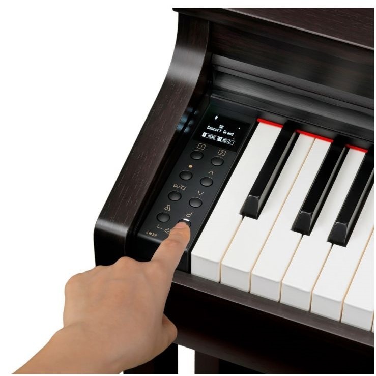 Для бесшумной игры в любое время суток предусмотрена возможность подключения наушников. Удобная панель управления с OLED-дисплеем высокого разрешения облегчает работу с инструментом.
