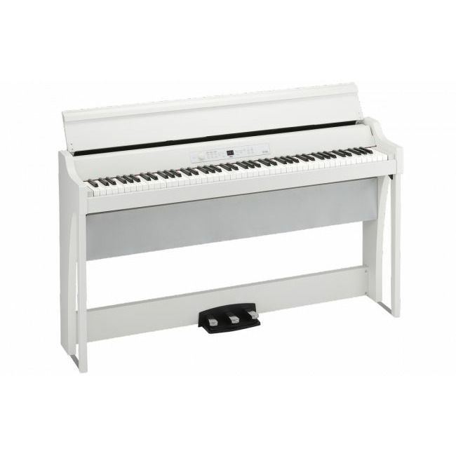 KORG G1-WH – современное многофункциональное цифровое пианино с великолепным звуком, представленное Korg в 2017 году. Модель отличается чрезвычайно естественными ощущениями при игре. Молоточная клавиатура Real Weighted Hammer Action 3 с 88 клавишами, чувствительными к нажатию, делает ощущения при игре очень натуральными, как будто Вы играете на настоящем акустическом фортепиано. Предусмотрено пять уровней чувствительности. Цифровое пианино KORG G1 способно воспроизводить звучание трёх знаменитых роялей: немецкого, австрийского и японского. Для каждого исполняемого произведения Вы можете выбрать, какой вариант звучания использовать. 120-нотная полифония позволяет получить великолепный объемный звук с прекрасной динамикой. В дополнение к 3 вариантам фортепианного звучания доступно ещё 32 звучания различных инструментов, включая орган и струнные инструменты. Три вида эффектов: реверберация, яркость и хорус позволяют настроить звучание по Вашему вкусу, открывая широкие перспективы для импровизации. Есть возможность записи своих композиций. Встроенная акустическая система с четырьмя динамиками по 20 Вт каждый выдаёт звук великолепного качества. KORG G1 выпускается в трёх вариантах цветового исполнения корпуса. Представленная модель – стильного черного цвета. Банкетка в комплект не входит.