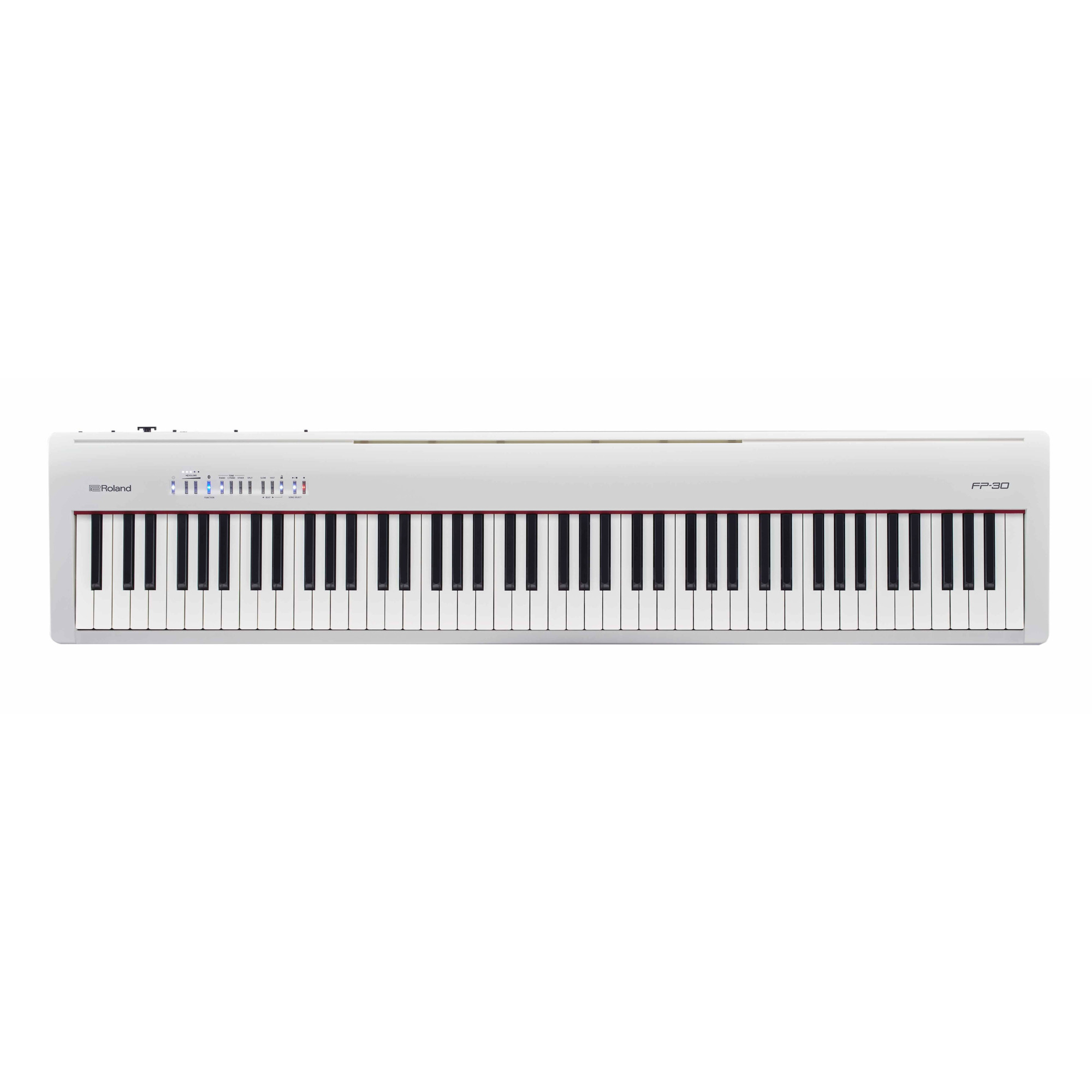 Roland FP-30-WH - компактное цифровое фортепиано с тон-генератором SuperNatural Piano. Если Вы когда-либо мечтали о фортепиано, но не могли себе его позволить ни деньгам, ни по требуемому месту, рассмотрите FP-30. Это - недорогое фортепиано с замечательным звучанием Roland, достоверными ощущениями игры и современными возможностями. Несмотря на полную клавиатуру 88 нот, инструмент компактен. Он легок, его несложно переставить с места на место, он может служить и как личный инструмент, и как учебный в школу или музыкальный кружок. Кроме фортепиано, инструмент дает множество других тембров. Он также содержит функционал для самостоятельных занятий и для записи. С помощью беспроводной связи Bluetooth® можно работать с любыми музыкальными приложениями, что дает безграничные возможности, ранее недоступные в бюджетных инструментах - как для обучения, так и для музыкального продакшна.