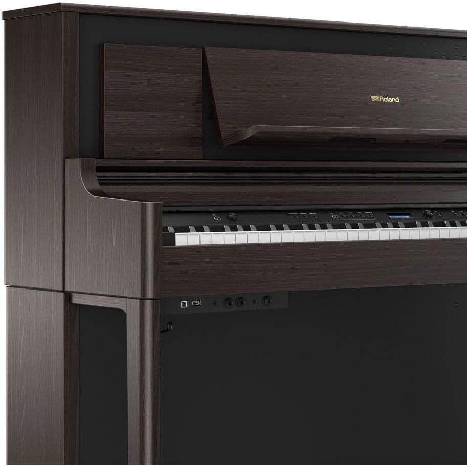 Roland LX706-DR + KSL706-DR - высококачественное домашнее фортепиано с акустической системой, укомплектованной шестью динамиками, тембром рояля и эффектами объемного звучания.