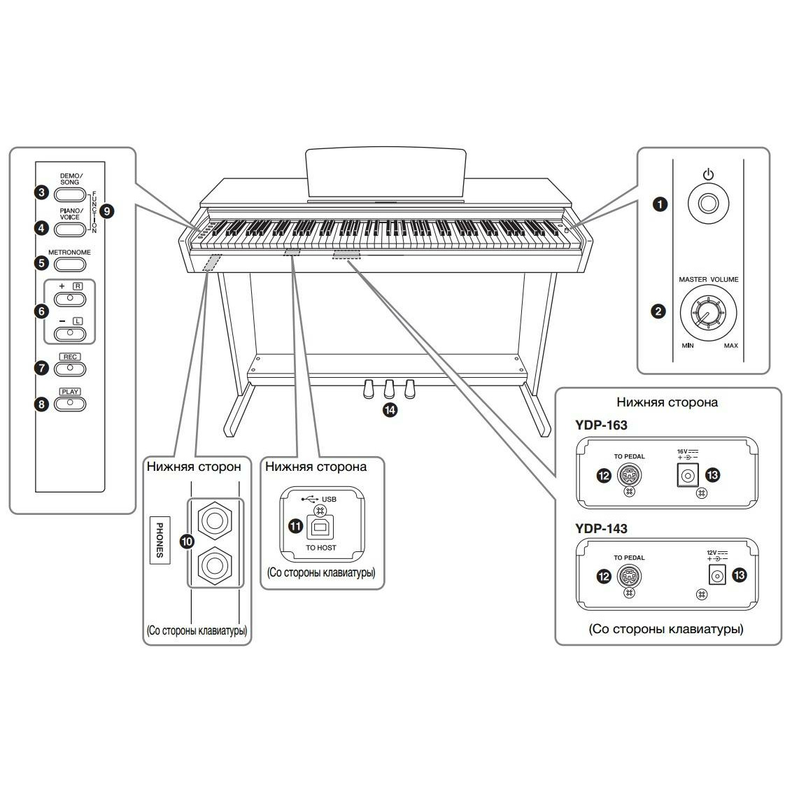 YDP-143 имеет широкий ряд предустановленных классических фортепианных композиций для прослушивания и обучения с удовольствием. Кроме того, пианино поставляется с книгой "50 Greats for the Piano" (50 превосходных композиций для фортепиано) с соответствующими партитурами, чтобы Вы смогли играть вместе или самостоятельно научиться играть эти композиции. Также для приятного времяпровождения можно просто воспроизводить эти композиции. Эта функция обязательно добавит часы удовольствия в этот потрясающий инструмент.