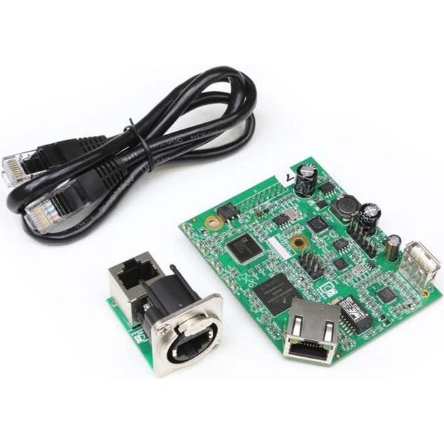 Подключение к сети производится с помощью одного разъема Ethercon, совместимого со стандартными разъемами RJ45. Интерфейсный модуль поставляется с необходимыми для установки в усилитель мощности аксессуарами. Установка должна выполняться квалифицированным специалистом.