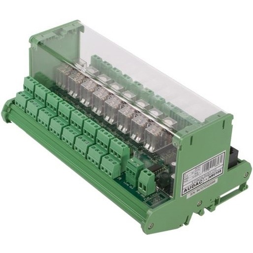 ARU108 – универсальный релейный модуль с 8 переключающими реле, специально разработанный для переключения между 2-мя входными сигналами. Может быть использован со 100-вольтовыми линиями, стандартными сигналами низкого сопротивления громкоговорителей, а также между сигналами линейного уровня.
