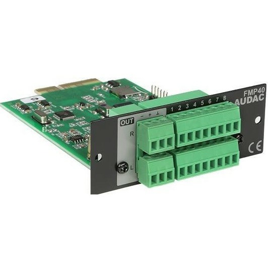 FMP40 - модуль расширения для быстрого воспроизведения XMP44. Воспроизведение файлов через порт USB, выбор контента осуществляется 15-ю триггерными входами. Модуль расширения, вставляемый в XMP44, обнаруживается и используется плеером в режиме Plug & Play.
