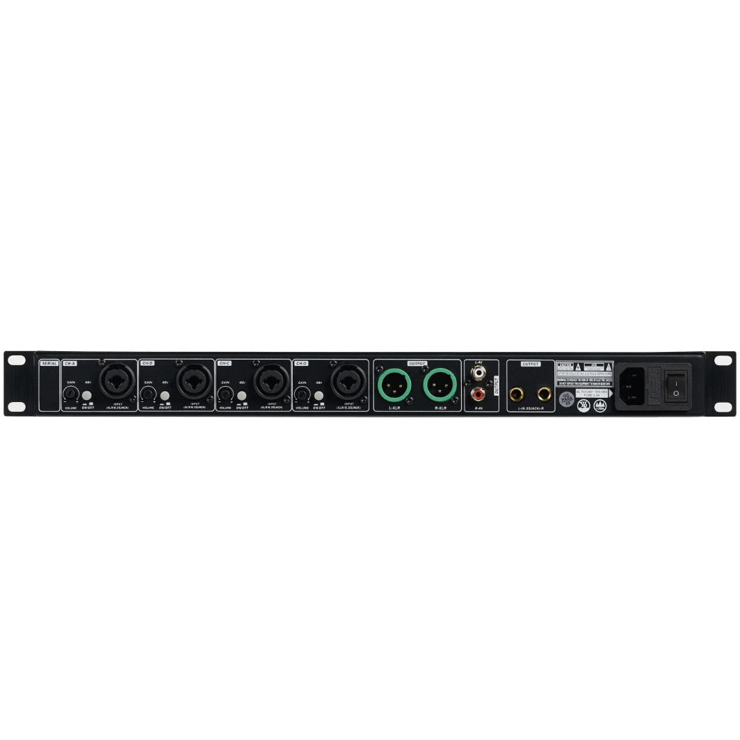 | Входы | 4 симметричных канала (XLR/TRS) с независимым фантомным питанием +48 В |