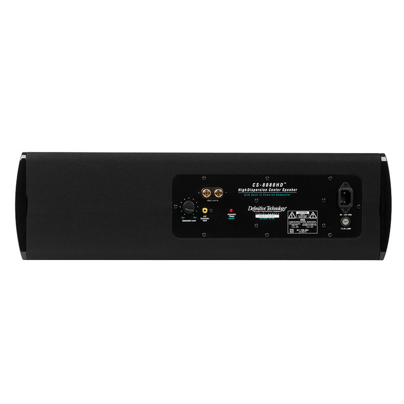 Definitive Technology CS-8080HD – полочная монополярная акустическая система с пассивным излучателем для центрального канала оснащена парой НЧ-динамиков диаметром 114.3 мм, выполненных по запатентованной технологии BDSS второго поколения. Она предусматривает двойной подвес диффузора басовика, с внешней и с внутренней сторон, за счет чего его перемещение получается максимально линейным, и эффективно подавляются паразитные резонансы. Между НЧ-динамиками располагается 25.4 мм пищалка с алюминиевым куполом, покрытым тончайшим слоем керамики. При изготовлении ВЧ-динамика купол проходит высокотемпературный отжиг, благодаря чему его механические свойства стабилизируются. Динамики подключены к простому разделительному фильтру, выполненному из качественных компонентов. Для подключения к усилителю используется одна пара позолоченных винтовых клемм.