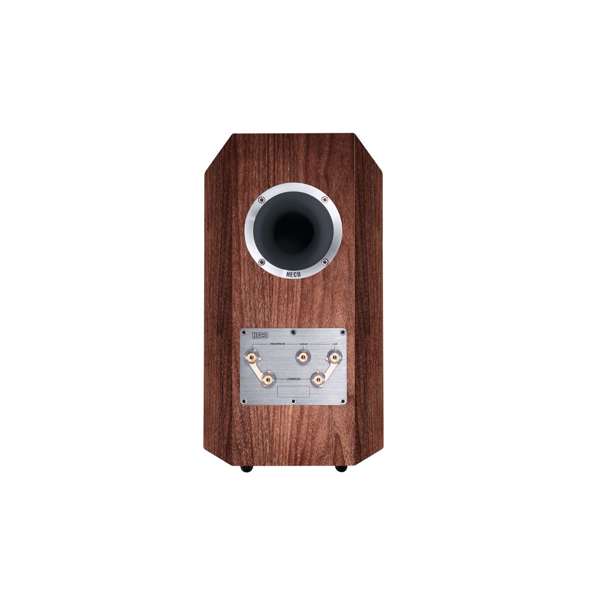 Компактные High-End полочные АС с выдающимися акустическими свойствами. Модель привлекает внимание скошенной верхней панелью, закругленными боковыми панелями и сужающемуся к тылу корпусу. В НЧ секции установлен 170-мм вуфер с великолепно зарекомендовавшим себя бумажным диффузором «HECO Kraft», который славится своими высокими аудиофильскими качествами. Недавно разработанный твитер «Fluktus» оснащенный оптимизированным мультиволновым алюминиевым фланцем и 30-мм тканевым куполом «PFC Dome», обеспечивает точнейшую локализацию и фокусировку звуковых образов с отличной 3D сценой и тембрально естественное звучание.