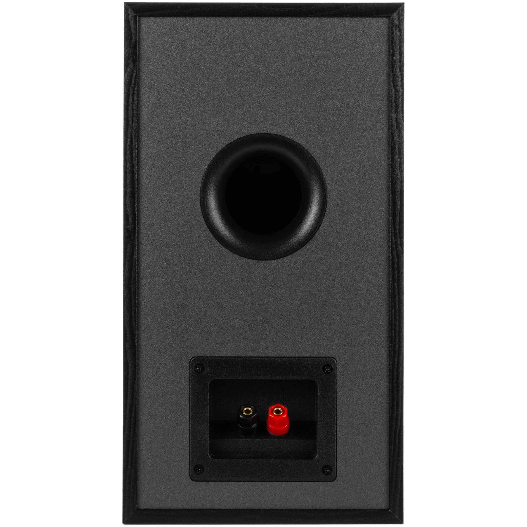Низкочастотный динамик в Klipsch R-51M имеет диаметр 5,25 дюйма и воспроизводит насыщенные и проработанные басы, которые трудно ожидать от таких небольших колонок. Динамик нагружен на фазоинвертор, выходное отверстие которого выведено на заднюю панель. Там же находится и входной блок, представленный парой винтовых клемм.
