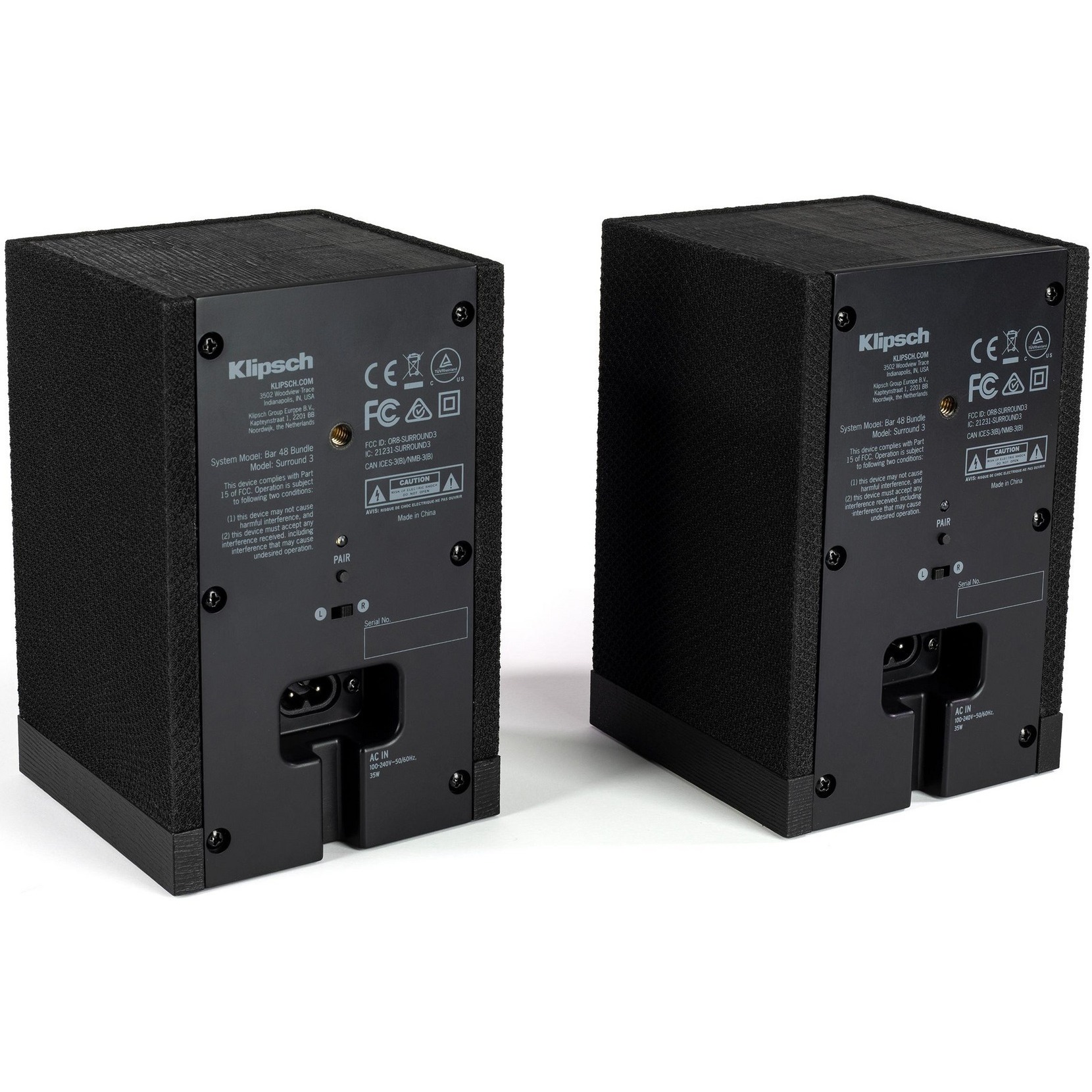 Беспроводные колонки Klipsch Surround 3 предназначены для использования в качестве тыловых с совестимыми саундбарами Klipsch. Колонки выполнены в корпусах из MDF и имеют небольшие размеры, что позволяет легко установить их на подходящей полке. Передняя и боковые панели Klipsch Surround 3 закрыта защитной тканью, а черная отделка данной модели делает колонку малозаметной в интерьере.