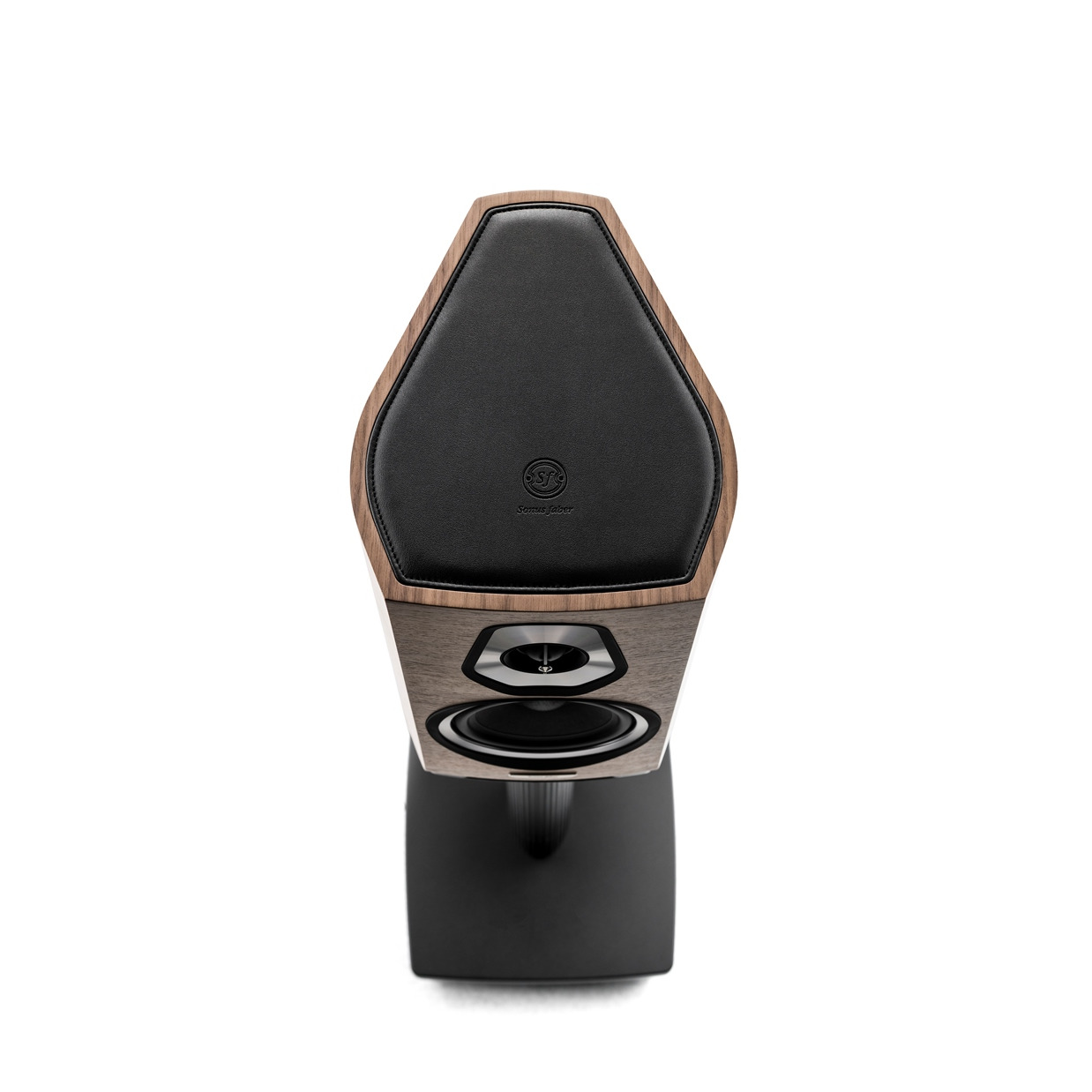 Корпуса колонок Sonetto имеют традиционную для SF форму лютни, которая не только элегантно выглядит, но и помогает бороться с внутренними резонансами, улучшая звучание. Причем передняя панель плавно переходит в боковые стенки, улучшая восприятие цельного образа колонок. Еще один традиционный штрих к образу премиальных АС — верхняя панель, обтянутая кожей ручной выделки с логотипом компании. Есть вещи, которые руки так и тянутся потрогать, именно таким элементом колонок и является передняя панель с шикарной кожей, которую хочется почувствовать подушечками пальцев. Из таких мелких элементов и создается аура обладания премиальным продуктом.