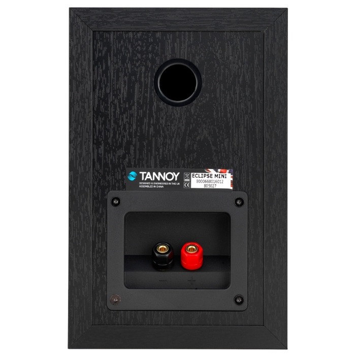 Tannoy Eclipse Mini имеют двухполосную конфигурацию и оснащены фазоинвертором, выходное отверстие которого находится на задней панели. Низкочастотный динамик, диаметр которого составляет 100 мм, оснащен диффузором из мультифибры на эластичном подвесе, и при небольшом весе обладает хорошей жесткостью, а также устойчив к возникновению резонансов. Благодаря мощной магнитной системе излучатель точно отслеживает самые быстрые изменения музыкального сигнала и развивает существенное звуковое давление. Высокочастный динамик с полиамидным куполом диаметром 28 мм работает в расширенном до 32 кГц диапазоне частот, благодаря чему звучание колонки приобретает дополнительную детальность и воздушность, а записи в новых форматах High resolution звучат полноценно. Неплохая для такой миниатюрной акустики чувствительность в 86 дБ позволяет Tannoy Eclipse Mini звучать полновесно и насыщенно при подведении мощности от 15 Вт, что делает ее совместимой с любыми современными AV-ресиверами и усилителями. Колонка оснащена разделительным фильтром, настроенным на 2,2 кГц и выполненным с использованием качественных компонентов, а для подачи сигнала предназначена пара надежных винтовых клемм.