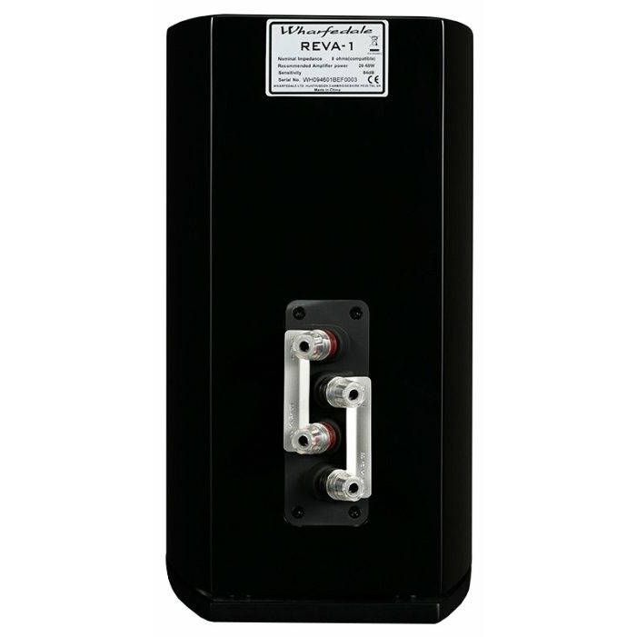 Wharfedale REVA-1 Black Piano - полочная акустика, состоящая из 25-миллиметрового мягкого купольного твитера и 125-миллиметрового НЧ-динамика собственного производства с диффузорами из стекловолокна, мягкими подвесами и крупными фазовыравнивающими "пулями" в центре. Оформление - фазоинверторное, причём порт выведен в небольшой зазор между дном корпуса и платформой. Такое решение применялось в дорогой серии Jade и в техническом описании обозначалось как апериодическая нагрузка. Дело в том, что акустическое сопротивление узкого зазора зависит от длины звуковой волны и, подобрав его ширину, можно выровнять частотную характеристику на нижних частотах. Инженеры компании потратили много времени на правильный подбор материалов и в конце концов остановились на слоистой ДСП и МДФ различной плотности. Акустика выполнена в цвете черный лак.