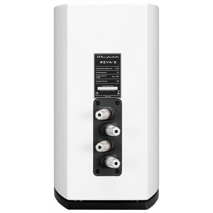 Вместо порта фазоинвертора на тыльной или фронтальной стороне, в колонках применена другая схема. Вдоль всего корпуса между стенками и основанием колонок пролегает узкий зазор. По утверждению инженеров Wharfedale, эта конструкция обеспечивает более плавный переход внутрикорпусного давления в исходящий звук, по сравнению с традиционной круглой. И действительно басы Reva-2 глубже и чётче, причём остаются такими, даже если разместить колонки близко к стене. Акустика выполнена в белом цвете.