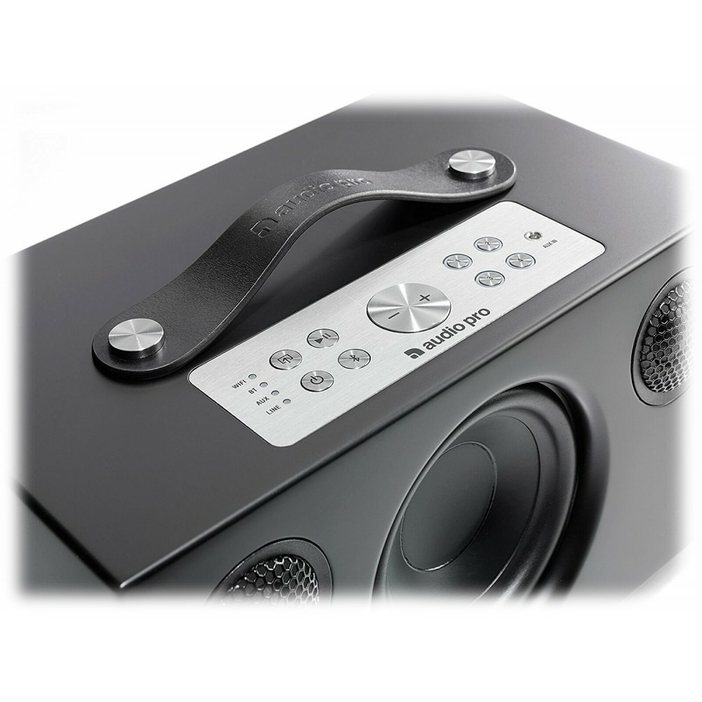 Вместе с выходящим назад более крупным портом фазоинвертора и усилителем класса D с удвоенной по сравнению с C5 мощностью в 80 Вт он позволяет Addon C10 выдавать басы на 5 Гц ниже – и более уверенно к тому же. Сигнал можно подавать по Wi-Fi, Bluetooth 4.0 и AirPlay, а также при проводном подключении через RCA-вход.