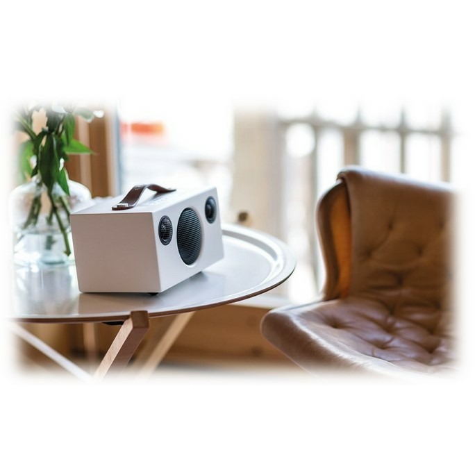Удобная кожаная ручка для переноски и стильная алюминиевая панель управления на верхней крышке удачно вписывает колонку в дорогой интерьер. Широкополосный динамик выдает внушительные для размера колонки 15 Вт, а высокочастотники по 5 Вт каждый.