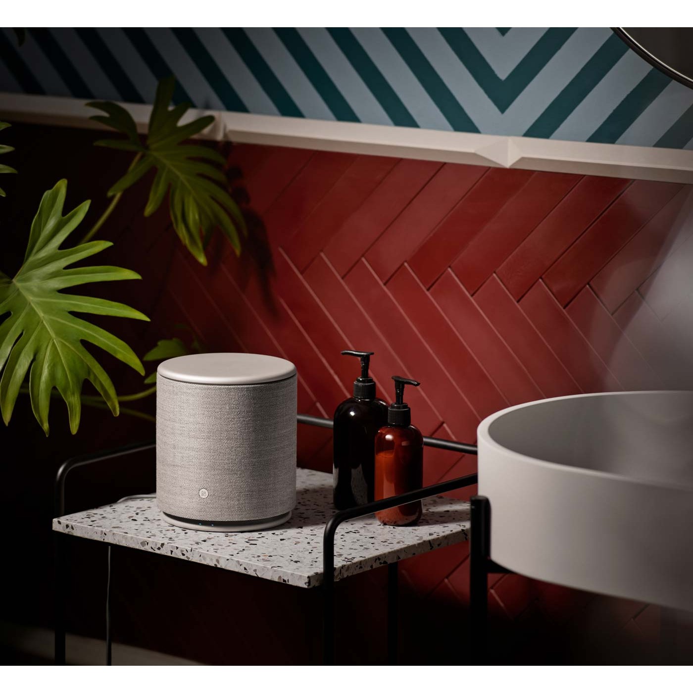 Акустика поддерживает встроенные технологии Google Chromecast и Beolink Multiroom. Также вы можете производить подключение через Bluetooth или Apple AirPlay. Настройку Beoplay M5 можно произвести через специальное приложение Beoplay App, которое значительно расширяет возможности колонки и опыт ее использования. Приложение дает возможность активировать настройку оптимизации позиции. Что в свою очередь повышает качество звука в зависимости от того, где размещен динамик - в углу, стене или на открытом месте. Beoplay M5 - акустика, которая идеально вписывается в любой интерьер - и одновременно выделяется из него. Элегантная колонка покрыта акустически проницаемой высококачественной шерстяной тканью, которая сочетается с алюминиевыми поверхностями. Верхняя часть колонки - это алюминиевый диск, который обеспечивает взаимодействие с основными функциями Beoplay M5. Вращение диска на 15 градусов в каждом направлении регулирует уровень громкости. После чего диск плавно возвращается в исходное положение - не слишком быстро и не слишком медленно. Мягкое нажатие на диск запускает или приостанавливает воспроизведение музыки.