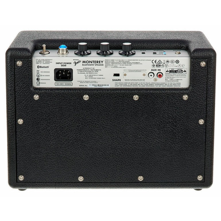 FENDER Monterey Bluetooth Speaker – мощная Bluetooth колонка от знаменитого американского гитарного бренда, выполненная в классическом фендеровском стиле. Дизайн колонки был разработан в Южной Калифорнии и основан на внешнем виде классических гитарных усилителей ’68 Custom. Модель отличается прекрасным звуком, мощным, чистым и четким, очень естественным, который стал визитной карточкой Фендер. Через эту колонку можно не только прослушивать музыку, но и при необходимости принимать телефонные звонки. Имеется встроенный микрофон с эффективным подавлением возникающего эхо. Мощность модели – 120 Ватт. Акустическая система состоит из двух вуферов и двух твитеров. Звучание настраивается регулятором громкости и двухполосным эквалайзером, а также переключателем Shape. К колонке можно подключаться как по Bluetooth, так и с помощью аудио кабеля с разъемом мини-джек. Есть также разъем RCA для подключения виниловых проигрывателей и аналогичного оборудования. Колонка заключена в прочный корпус из натуральной древесины. В её конструкции используются такие же материалы и технологии, как в легендарных усилителях Fender. В комплекте поставляется кабель для подключения к сети электропитания, аудио кабель и кабель RCA. Вес колонки – 6,8 кг.