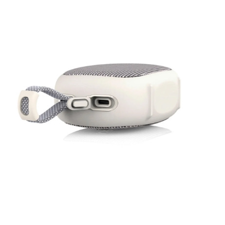 Модель отличается обтекаемым корпусом с мягким силиконовым покрытием, соответствует стандарту влагозащиты IPX6 и доступна в белом, розовом и оливково-зеленом исполнении. Встроенный ремешок обеспечивает удобную переноску устройства, а наличие карабина позволяет закрепить колонку на рюкзаке или сумке.