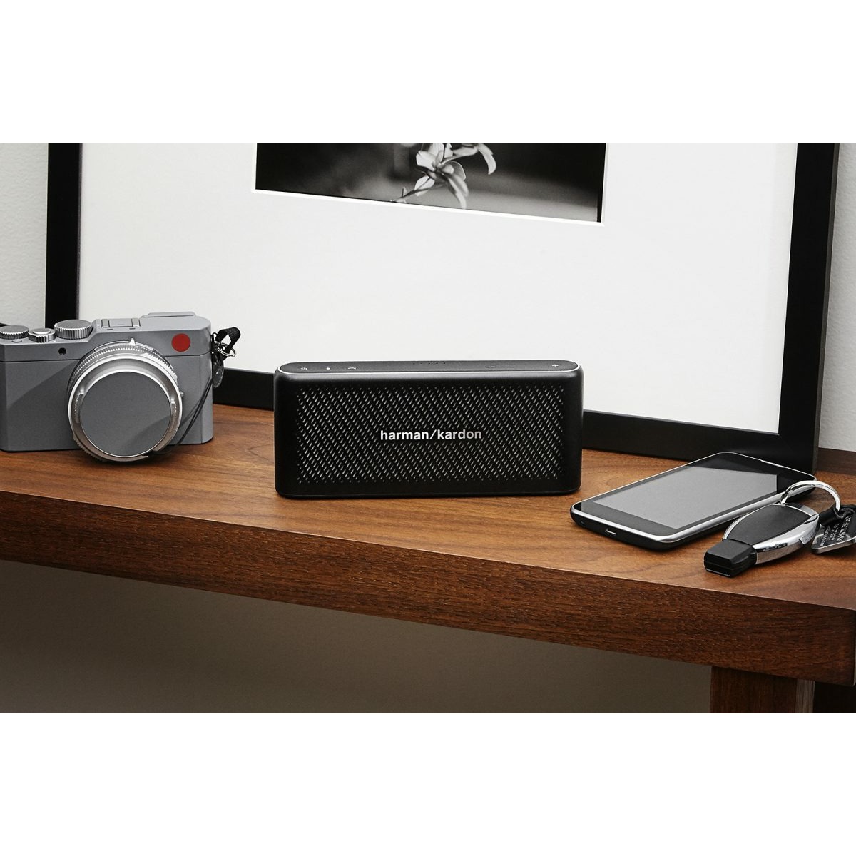 БЕСПРОВОДНОЕ ПОДКЛЮЧЕНИЕ BLUETOOTH С легкостью подключайте любые устройства. Слушайте музыку с профессиональным звучанием. ПРИНИМАЙТЕ ЗВОНКИ Принимайте кристально чистые конференц-звонки нажатием кнопки с высококачественным шумо и эхоподавлением. 2500MAH POWER BANK Встроенная перезаряжаемая литий-ионная батарея обеспечивает беспрерывную работу до 10 часов, после чего с легкостью можно будет зарядить устройство через USB. ПРЕВОСХОДНЫЙ ДИЗАЙН Прекрасный алюминиевый дизайн с акцентом на кожу и алмазным краем для создания элегантного и стильного компаньона для путешествий. КОМПАКТНЫЙ РАЗМЕР Компактный и достаточно тонкий, чтобы быть с вами везде, куда бы вы ни отправились, вы всегда окажетесь с высококлассным звучанием. Harman Kardon Traveler - идеальный компаньон для путешествий, предназначенный для любителей профессионального звучания. Оснащен Bluetooth и системой конференц-связи с двумя микрофонами и подавлением эха и шума и мощным встроенным аккумулятором. Мастерски обработанный высококачественными материалами в гладком, безукоризненном алюминиевом дизайне.