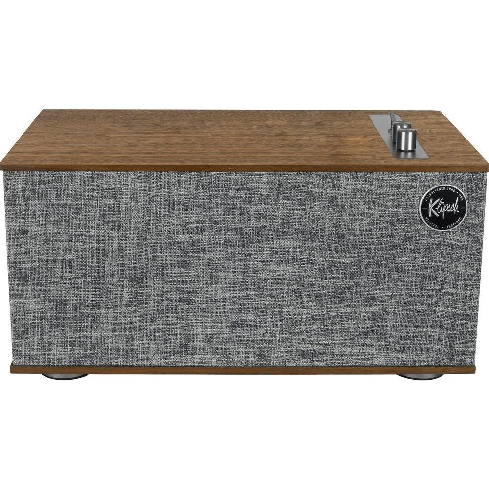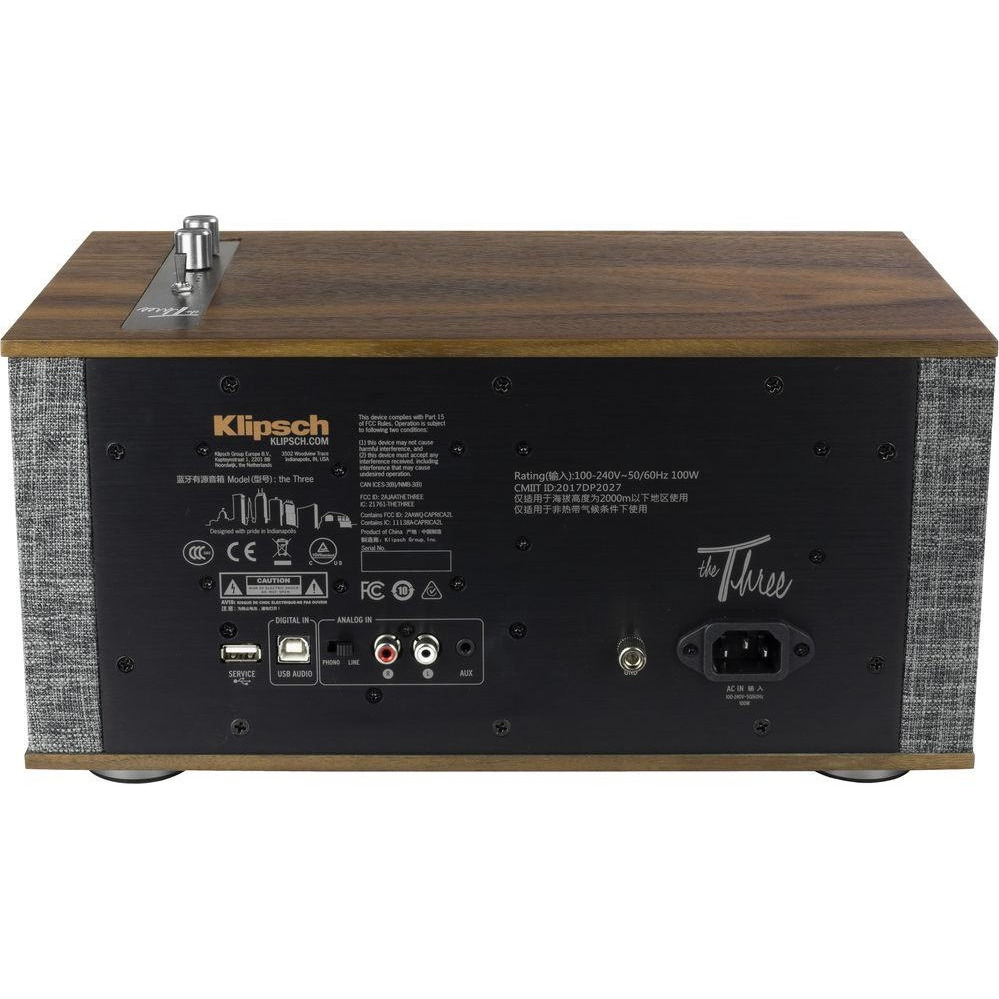 Обновленная акустическая система Klipsch The Three II сохранила роскошный ретро-облик предыдущей модели, однако теперь ее дизайн стал немного строже. Медные органы управления на верхней панели были заменены на такие же стального цвета, а исторический логотип Klipsch стал круглым. Рукоятки и переключатели перемещаются с четкими и приятными тактильными ощущениями, и снабжены понятной светодиодной индикацией. Klipsch The Three II выпускается в вариантах отделки шпоном натурального ореха или матовой черной, при этом защитная ткань в каждом случае также разная.