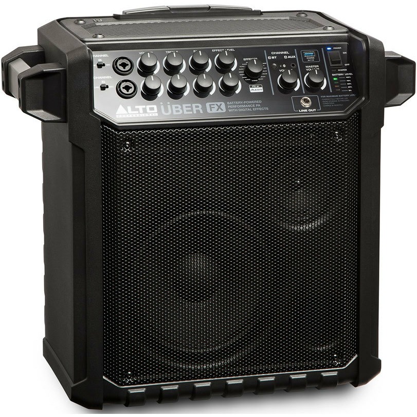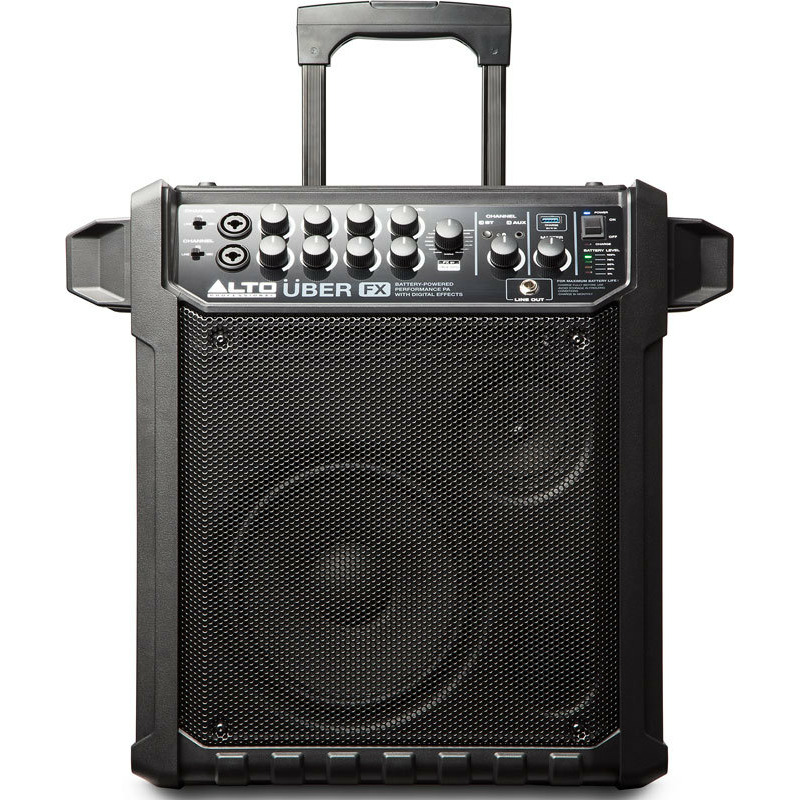 Модель располагает двумя входными каналами с независимым контролем уровня и эквализацией. Также к Uber FX можно подключить любое Bluetooth-устройство для беспроводного воспроизведения музыки, а чтобы оно не разрядилось раньше времени, на передней панели предусмотрен USB-порт для зарядки. Для удобства транспортировки Uber FX имеет два колесика и телескопическую ручку.